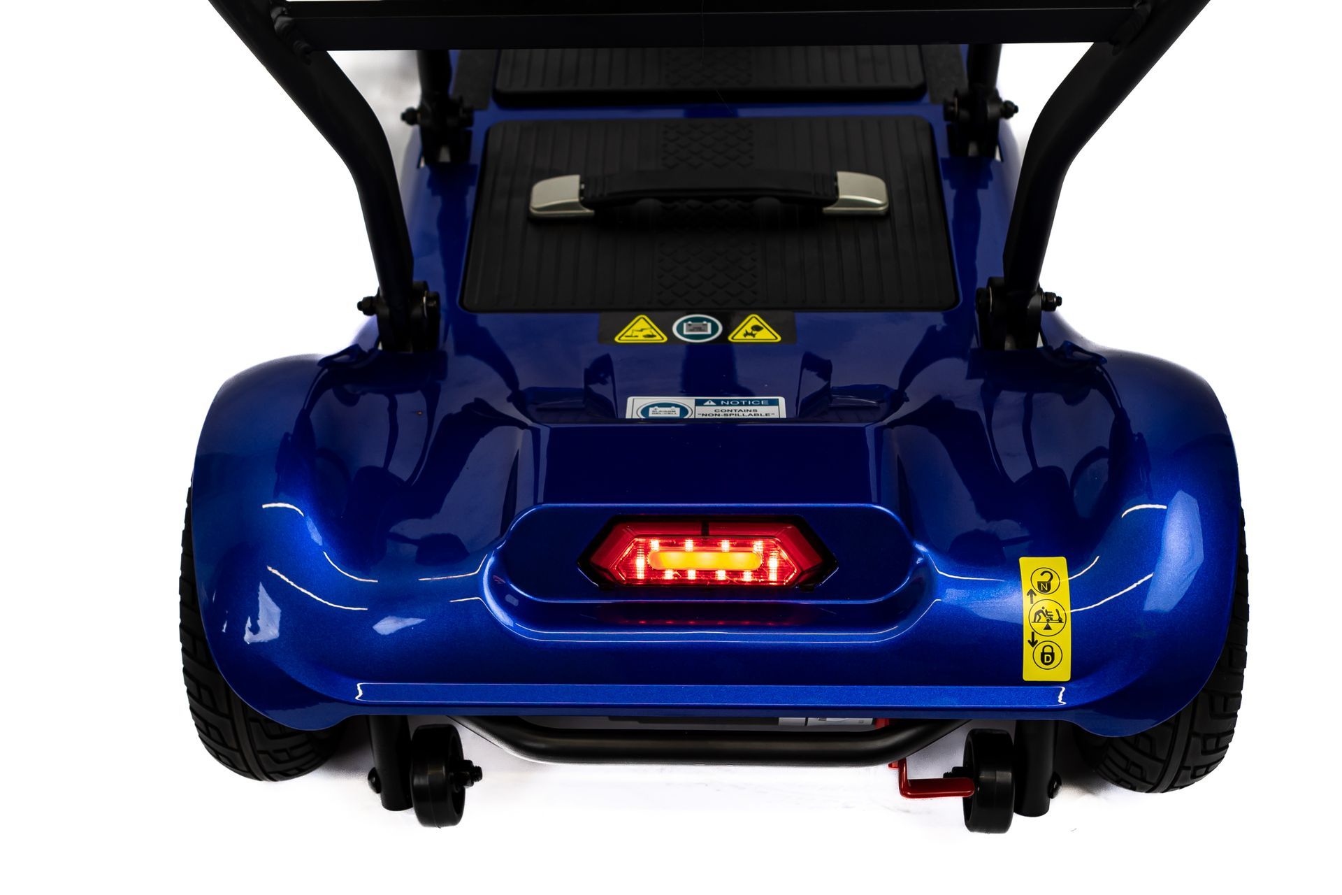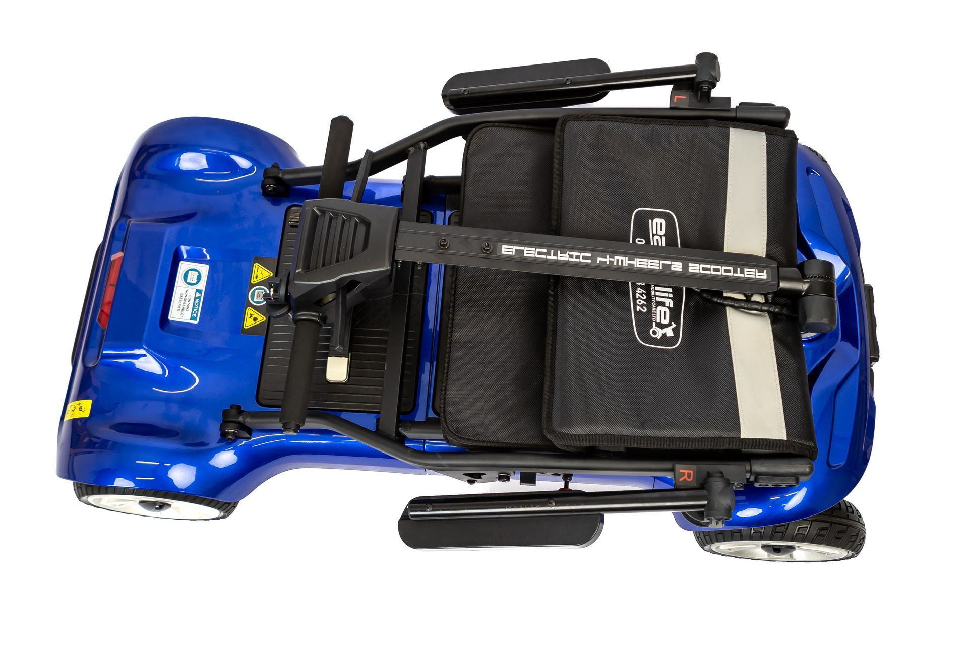 This mobility scooter is ideal for any form of travelling & transportation and is powered by dual airline friendly lithium batteries which gives a range of 20 MILES (Unprecedented mileage!). Top speed 5mph, weight capacity 18.5 Stone.
