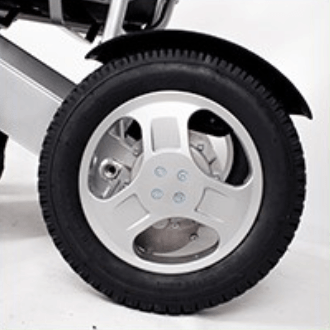 The Ezi-Fold Light Plus+ power wheelchair is suited for both indoor and outdoor use thanks to its large 12.5 inch rear wheels.